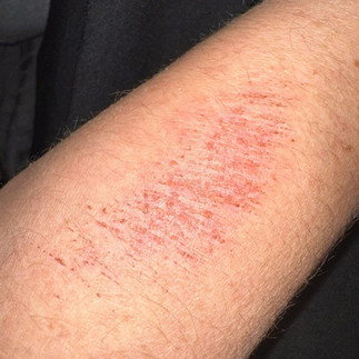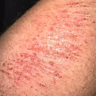 • Teilweise kleine Krusten oder Aufrauungen wie bei oberflächlicher Verbrennung